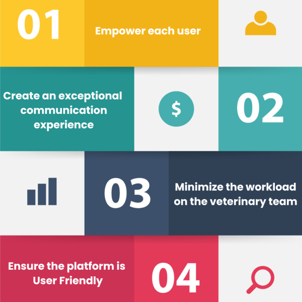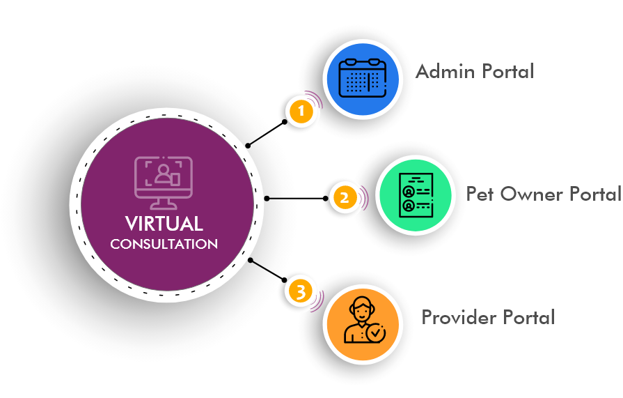 The veterinary team and pet parents are empowered with their own portal.  The portals are integrated enabling your team to connect with pet owners in their own virtual exam room.